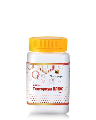 В драже заключены благотворные свойства прополиса и пыльцы. Их сочетание помогает привести в норму количество лейкоцитов и эритроцитов, повысить гемоглобин, улучшить обменные процессы и иммунитет, сделать лучше состав крови и наладить работу печени. Ученые заметили, что употребление пчелиной пыльцы хорошо влияет на сердечный ритм и артериальное давление, за счет чего сердце начинает работать как часы, легче восстанавливаются энергетические затраты, улучшается сопротивляемость организма. Благодаря великолепному балансу жиров, Тенториум плюс считается отличным средством против атеросклероза. Он способствует укреплению капилляров и улучшению микроциркуляции крови в головном мозге. При напряженной умственной работе и физических затратах прекрасно восстанавливает потерянную энергию. Иногда его называют "эликсиром молодости", потому что он оказывает превосходное геронтологическое действие.